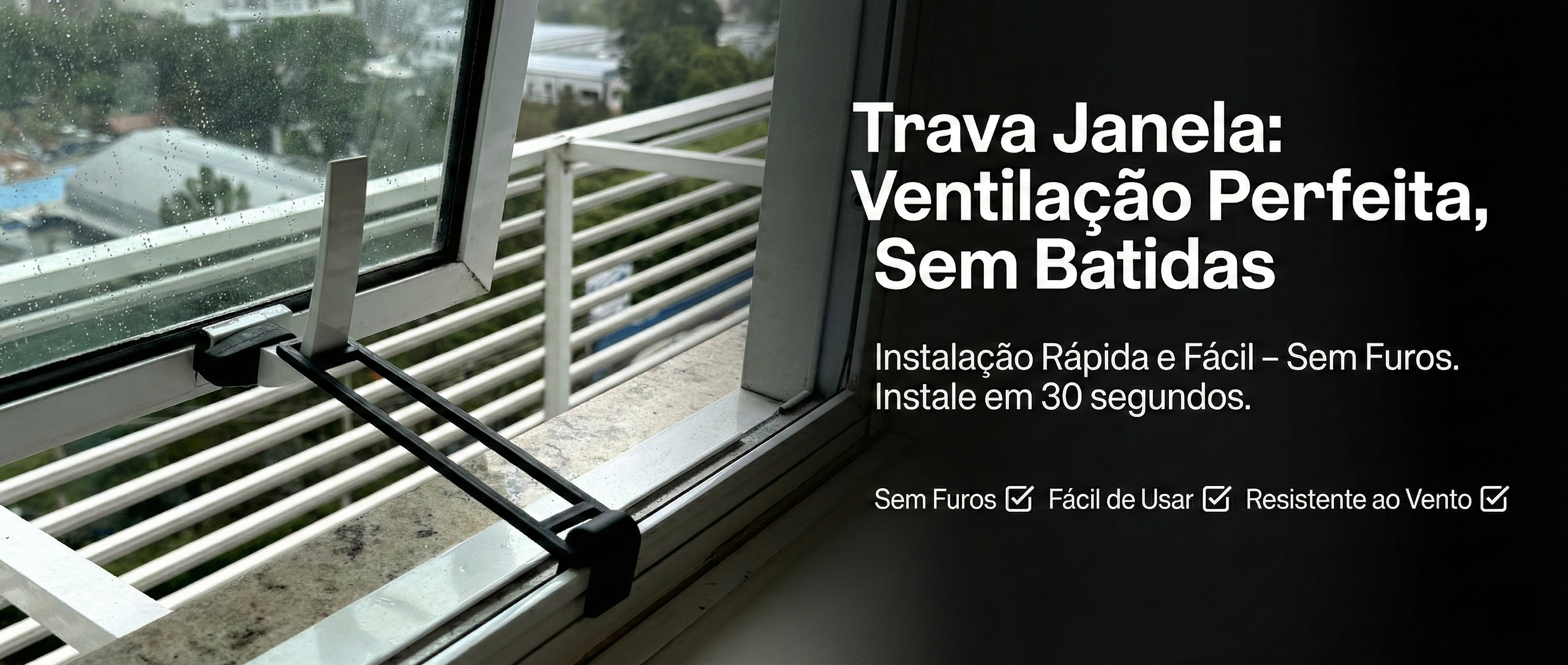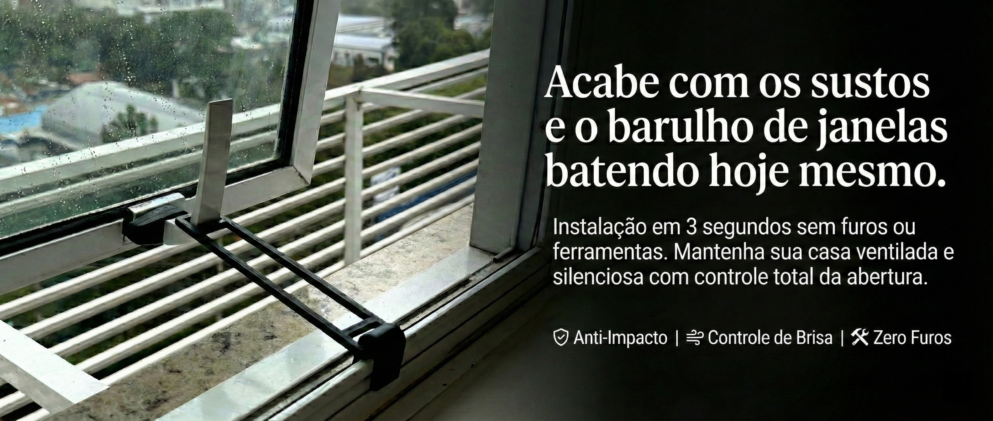 Com a TRAVA JANELA, você controla a abertura — a janela fica na posição certa, sem abrir além do limite.